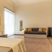 L’ampiezza dell’appartamento (150 m2) ha consentito di studiare più soluzioni al fine di poter soddisfare le possibili diverse esigenze degli ospiti. Esso è composto da un grande appartamento di 150 mq dotato di 2 camere triple, 1 doppia/matrimoniale, un salone, un’ampia cucina attrezzata con tutti gli elettrodomestici, 2 bagni e 1 wc.