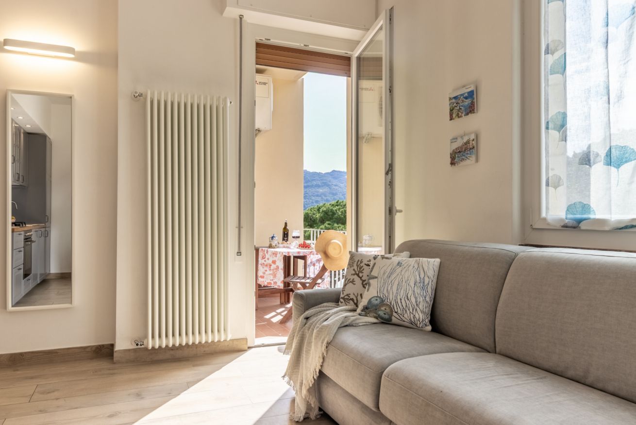La posizione è ideale: in pochi passi si raggiungono la spiaggia libera dell’Olivo e la spiaggia attrezzata Le Terrazze, perfette per godersi il mare cristallino e il sole della Liguria.