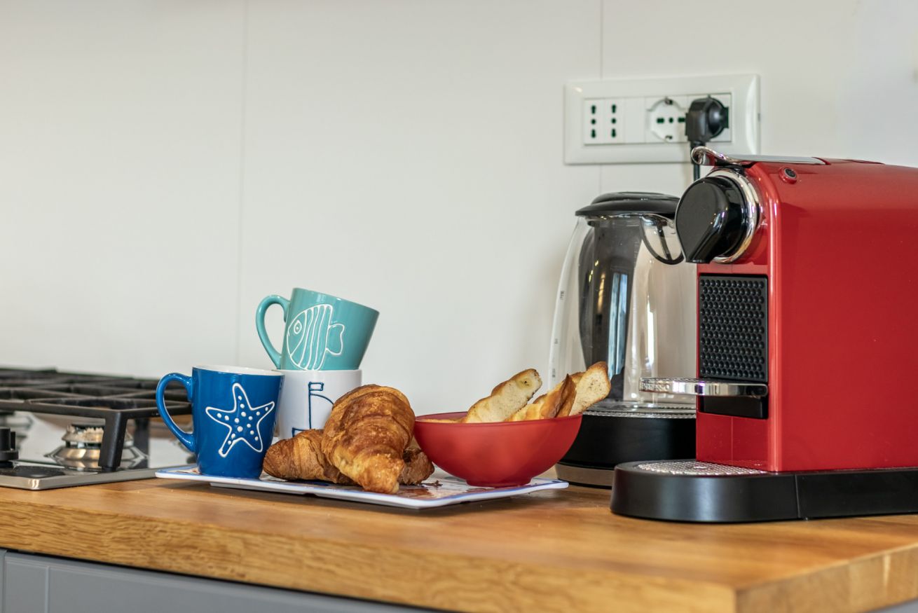 Il terrazzino panoramico è il luogo perfetto per fare colazione all’aperto, rilassarsi dopo una giornata di mare o godersi un aperitivo al tramonto con una vista unica sul Golfo.