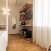 Le camere sono dotate di TV 46”, frigorifero “zero decibel”, cassaforte per PC da 15”, letti con materassi confortevoli, scrivania o tavolino, finestre e porte insonorizzate, serrande elettriche, bagni con ampie docce.