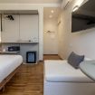 Le camere sono dotate di TV 46”, frigorifero “zero decibel”, cassaforte per PC da 15”, letti con materassi confortevoli, scrivania o tavolino, finestre e porte insonorizzate, serrande elettriche, bagni con ampie docce.